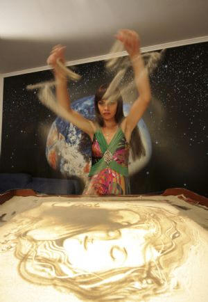 Những bức tranh cát của Simonova mang đến sự bình lặng, rồi những xung đột.
